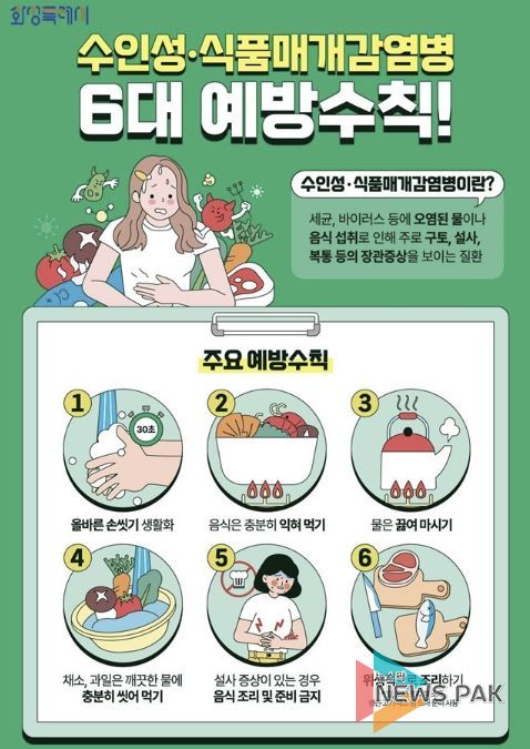 뉴스팍 류은정 기자 | 화성특례시는 최근 아침저녁으로 일교차가 큰 날씨가 이어지는 가운데, 낮 동안에는 기온이 오르고 다습한 환경이 조성되면서 수인성·식품매개감염병 발생 위험이 늘어나고 있다며 시민들의 각별한 주의를 당부했다.