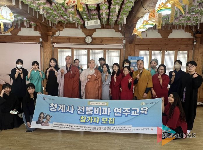 국가유산청의 ‘전통산사 국가유산 활용 공모 사업’으로 진행된 ‘신중도 속 비파천인들’은 청계사 극락보전 내 신중도(경기도 유형문화유산)에서 볼 수 있는 우리나라 전통악기 ‘비파’를 배우는 연주자 양성 교육으로, 2022년부터 올해까지 총 56명의 수료생을 배출했다.