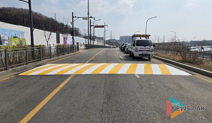뉴스팍 이소율 기자 | 오산시는 가수초등학교 통학로 안전 확보를 위해 인근 우미린 레이크시티 아파트 공사장 진출입로 주변에 과속방지턱 4개소를 신설했다고 밝혔다.