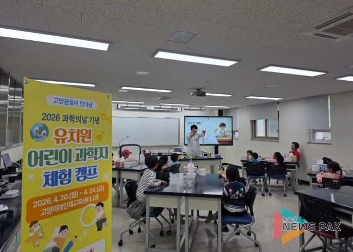 뉴스팍 배상미 기자 | 경기도고양교육지원청은 4월 과학의 날을 맞아'유치원 어린이 과학자 캠프'를 운영한다. 이번 캠프는 과학의 날(4월 21일)을 기념하여 4월 20일부터 24일까지 5일간 고양미래인재교육센터에서 진행된다.
