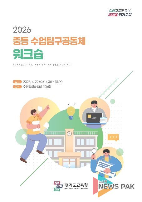 뉴스팍 배상미 기자 | 경기도교육청이 22일 수원컨벤션센터에서 중등 수업탐구공동체 261개 팀이 참여하는 워크숍을 개최한다. 수업탐구공동체 대표교사가 참여해 연구 역량을 강화하고 올해 운영 방향을 공유하고자 마련한 자리다.