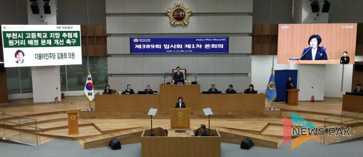 뉴스팍 배상미 기자 | 경기도의회 여성가족평생교육위원회 김동희 부위원장(더불어민주당, 부천6)은 제389회 경기도의회 임시회 제1차 본회의 5분 자유발언을 통해 부천시 고등학교 지망 추첨제 운영 과정에서 발생하고 있는 원거리 배정 문제를 지적하고 제도 개선을 강력히 촉구했다.