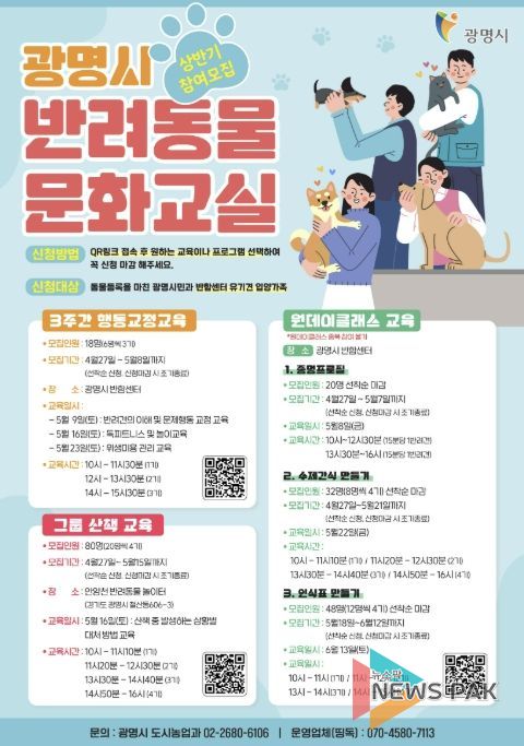 뉴스팍 배상미 기자 | 광명시가 반려인과 반려견의 행복한 일상을 위한 맞춤형 교육 프로그램을 운영한다.