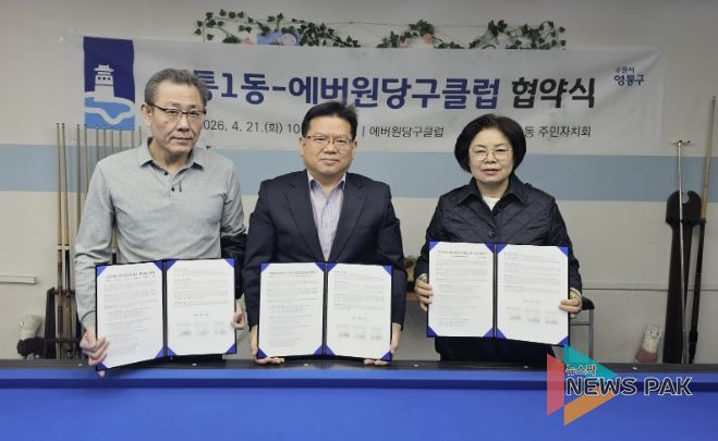 뉴스팍 배상미 기자 | 수원시 영통구 영통1동 행정복지센터와 영통1동 주민자치회는 지난 21일, 주민자치센터 프로그램의 다양성과 전문성을 강화하기 위해 관내 민간체육시설인 에버원당구클럽과 업무협약을 체결했다.