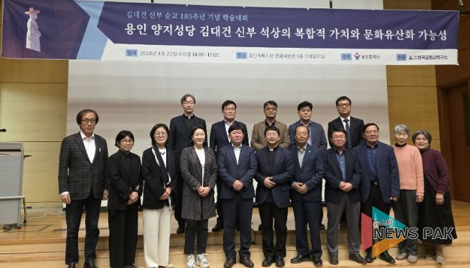 뉴스팍 배상미 기자 | 용인특례시는 22일 용인문화예술원 국제회의실에서 ‘용인 양지성당 김대건 신부 석상의 복합적 가치와 문화유산화 가능성’을 주제로 학술대회를 개최했다고 23일 밝혔다.