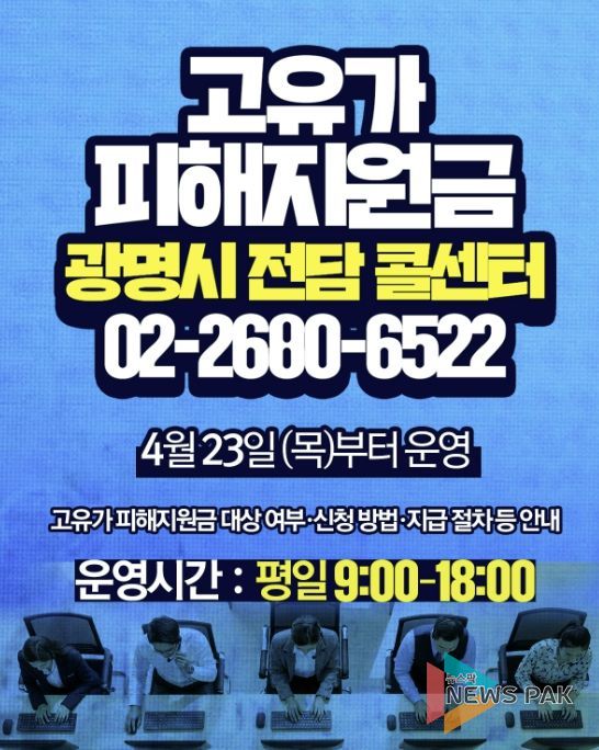 뉴스팍 배상미 기자 | 광명시가 ‘고유가 피해지원금’ 지급 관련 민원에 신속히 대응하고자 전담 콜센터를 23일 오전 9시부터 운영한다.