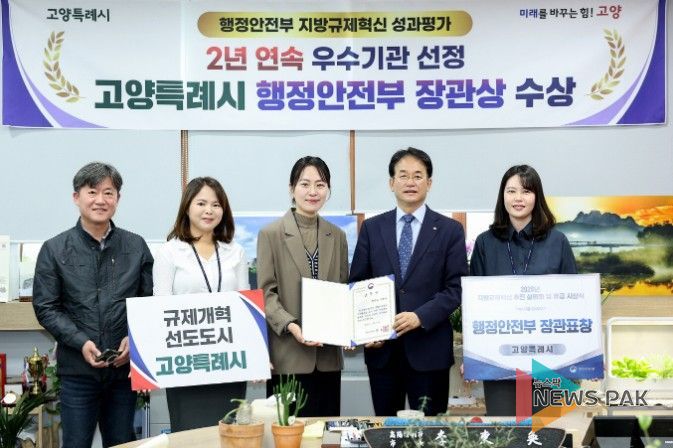 뉴스팍 배상미 기자 | 고양특례시는 지난 22일 행정안전부 주관 ‘2025년 지방규제혁신 성과평가’에서 행정안전부 장관상을 수상하며 규제혁신 분야에서의 경쟁력을 다시 한번 입증했다. 또 이번 평가에 따른 재정 인센티브로 지난해 말 특별교부세 1억 원을 확보했다.