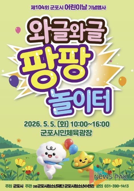 뉴스팍 배상미 기자 | 군포시는 제104회 어린이날을 맞아 오는 5월 5일 오전 10시부터 오후 4시까지 군포시민체육광장에서 ‘와글와글 팡팡 놀이터’를 주제로 어린이날 기념행사를 개최한다.