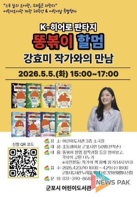 이번 행사는 “스무 살의 도서관, 우리들은 자란다”라는 주제로 2026년 5월 2일(토)부터 5월 20일(수)까지 진행되며, 군포시민 누구나 참여할 수 있다. 5월 3일(일)에는 고전동화를 줄인형으로 재해석한 가족 참여형 인형극 ‘빨간모자’가 상연되며, 5월 5일(화)에는 김선남 작가의 그림책 콘서트 ‘우리동네 나무가 건네는 노래’와 K-히어로 판타지 '똥볶이 할멈'강효미 작가와의 만남이 이어질 예정이다.