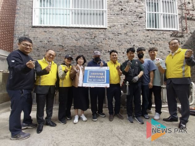 뉴스팍 배상미 기자 | 지난 23일 수원시 권선구 호매실동 지역사회보장협의체는 업무협약을 맺은 수원남부로타리 클럽과 주거환경개선 특화사업의 일환으로, 반지하 빌라에 거주하는 취약계층 어르신 댁에 에어컨을 설치했다.