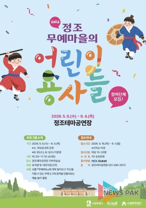 뉴스팍 배상미 기자 | 수원문화재단 정조테마공연장의 대표 예술교육 프로그램 '정조무예마을의 어린이 용사들'의 상반기 교육이 접수 마감되며 큰 호응을 얻고 있다.