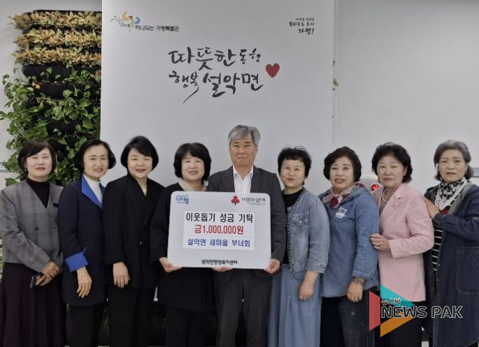 뉴스팍 배상미 기자 | 가평군 설악면 새마을부녀회 회원들은 최근 설악면 행정복지센터를 찾아 관내 취약계층을 위한 이웃돕기 성금 100만원을 기탁했다.