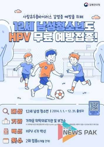 뉴스팍 배상미 기자 | 안양시보건소는 질병관리청의 방침에 따라 오는 5월 6일부터 사람유두종바이러스(HPV) 국가예방접종 무료 지원 대상을 12세 남아(2014년 출생자)까지 확대 실시한다고 27일 밝혔다.