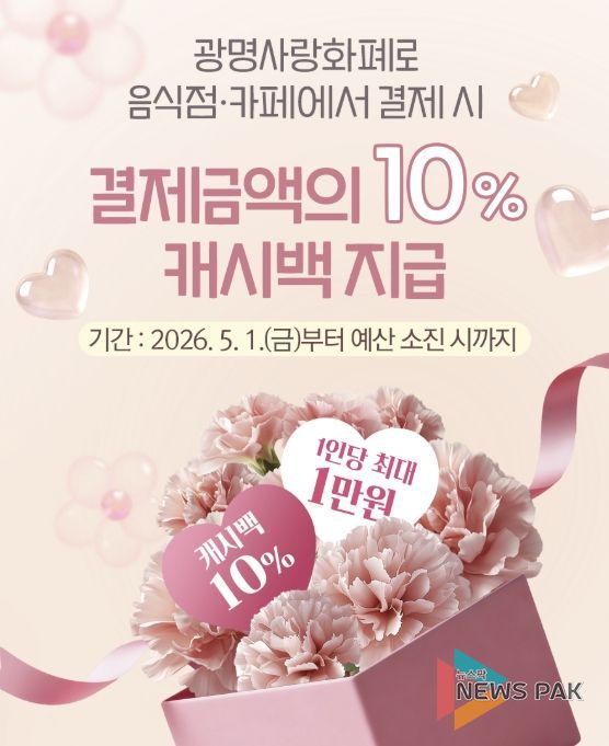 뉴스팍 배상미 기자 | 광명시가 5월 가정의 달을 맞아 가족 외식은 즐겁게, 골목상권은 활기차게 만드는 특별한 캐시백 혜택을 제공한다.