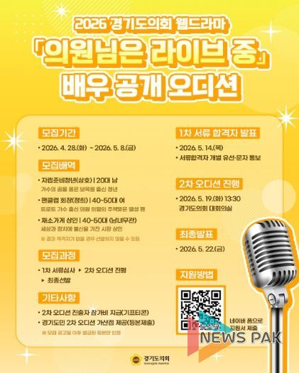 뉴스팍 배상미 기자 | 경기도의회는 2026년도 경기도의회 웹드라마 ‘의원님은 라이브 중(가제)’에 출연할 배우를 공개 모집하기 위해 오디션을 개최한다.