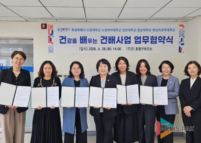 뉴스팍 류은정 기자 | 화성특례시 효행구보건소는 28일 오후 2시, 지역 대학 보건 관련 학과와 함께 ‘건강을 배우는 사업(건배사업)’ 추진을 위한 업무협약을 체결한다.