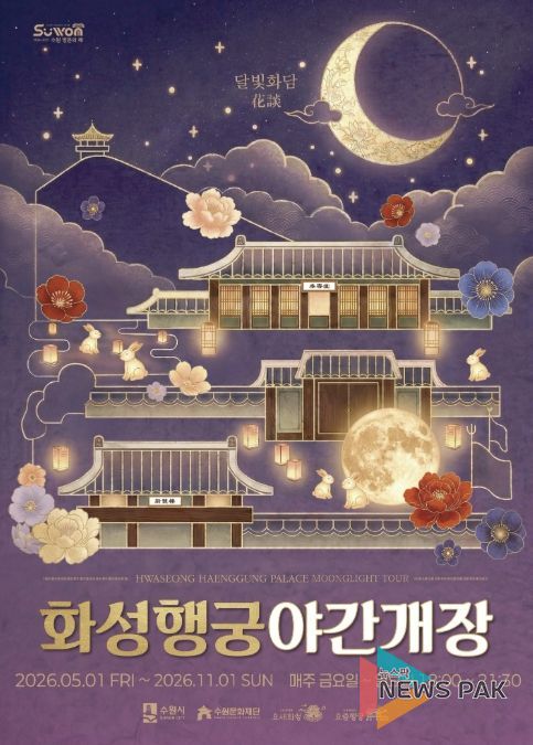 뉴스팍 배상미 기자 | 화성행궁 야간개장 ‘달빛화담, 花談’이 5월 1일 시작된다. 11월 1일까지 매주 금·토·일요일에는 저녁 9시 30분까지 화성행궁을 관람할 수 있다.