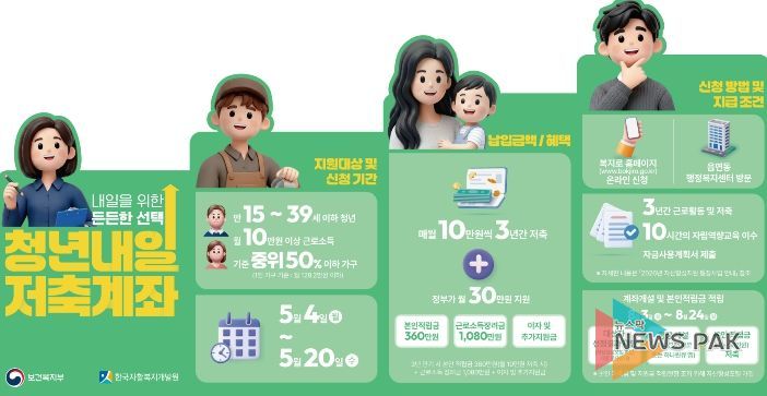 뉴스팍 배상미 기자 | 안성시는 일하는 청년의 근로 의욕을 높이고 자립기반을 마련할 수 있도록 5월 4일부터 5월 20일까지'청년내일저축계좌' 신규 가입자를 모집한다.