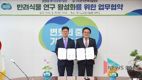 뉴스팍 배상미 기자 | 경기도농업기술원은 반려식물에 대한 수요 증가에 따라 관련 연구 기반을 마련하기 위해 29일 (사)한국반려식물협회와 업무협약을 체결했다.