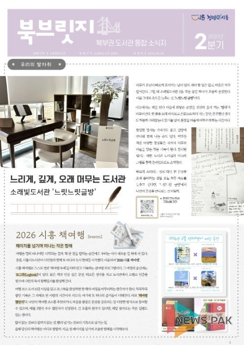 뉴스팍 배상미 기자 | 시흥시 소래빛도서관은 북부권 공공ㆍ작은도서관의 다양한 소식을 한눈에 전하는 분기별 소식지 ‘북브릿지(북부릿지)’ 2026년 2분기호를 발행했다.