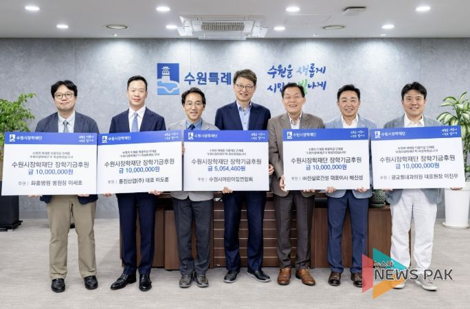 뉴스팍 배상미 기자 | 수원시 5개 기업·단체가 “지역인재 양성에 사용해 달라”며 수원시장학재단에 장학기금 총 4500만 원을 기탁했다.