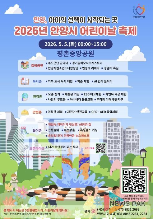 안양시 관계자는 “아이들이 스스로 선택하고 표현하는 경험은 그 자체로 소중한 성장의 동력”이라며, “아동친화도시 안양에서 모든 어린이가 존중받으며 축제를 즐길 수 있도록 행사 준비와 안전 관리에 최선을 다하겠다”고 말했다.