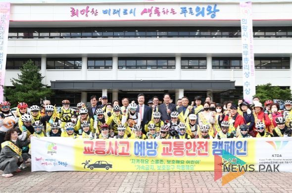 캠페인은 ‘지켜줘요 스쿨존, 보호해요 어린이’, ‘가속금지, 보호장구 착용해요’ 슬로건과 함께 의왕시청을 출발해 의왕시 전역을 차량과 자전거로 순회하며 진행됐다.