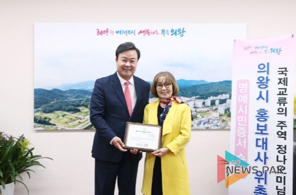 뉴스팍 최지은 기자 | 의왕시는 28일 미국과 의왕시와의 국제교류 협력 분야에 이바지한 정 나오미 씨(66·여)를 의왕시 홍보대사와 명예시민으로 위촉하고 위촉패와 명예시민증서를 수여했다.