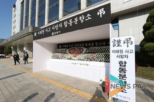 안양시는 이태원 사고와 관련해 시청 본관 앞과 안양역 광장에 합동분향소를 오는 5일까지 운영하는 한편, 장례 절차 등을 지원하고 있다.