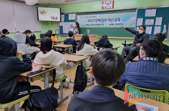 뉴스팍 최지은 기자 | 용인 죽전중학교는 11월 3일 1, 2학년을 대상으로 장애인식개선교육을 실시했다.