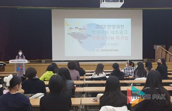 뉴스팍 최지은 기자 | 안양과천교육지원청은 11월 9일 2022 안양과천 학생자치회장 및 학생자치 담당교사 대상으로 학생주도 학생자치 활성화를 위한 소통과 나눔 워크숍을 운영했다.