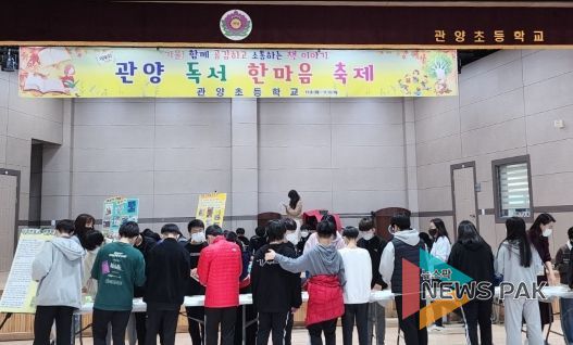 뉴스팍 최지은 기자 | 안양 관양초등학교는 11월 8일부터 10일까지 3일 동안 지혜의 숲 도서관 주관, ‘책과 함께 놀다’라는 주제로 ‘제9회 관양독서한마음축제’를 실시했다.