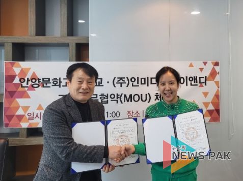 뉴스팍 최지은 기자 | 안양문화고등학교는 15일, ㈜인미디어에이앤디 외주제작사와의 업무협약을 삼성동 케이팝써포터즈 본사에서 체결했다.