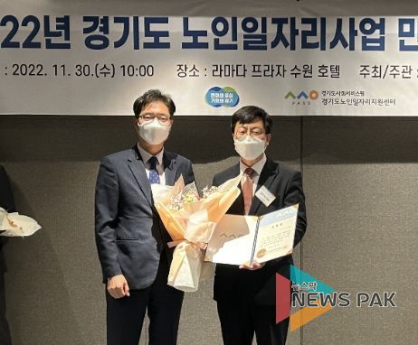 뉴스팍 최지은 기자 | 군포시니어클럽은 11월 30일 2022년 경기도 노인일자리사업 민∙관 합동 연찬회에서 2019년~2021년 경기도노인일자리 노후시설개선 지원사업단 중 ‘할매정성밥상 금정점’이 우수한 사업운영을 인정받아 경기도사회서비스원장 표창을 받게 됐다. 군포시니어클럽은 올 7월에 경기도지사표창에 이어 두 번째 수상이다.