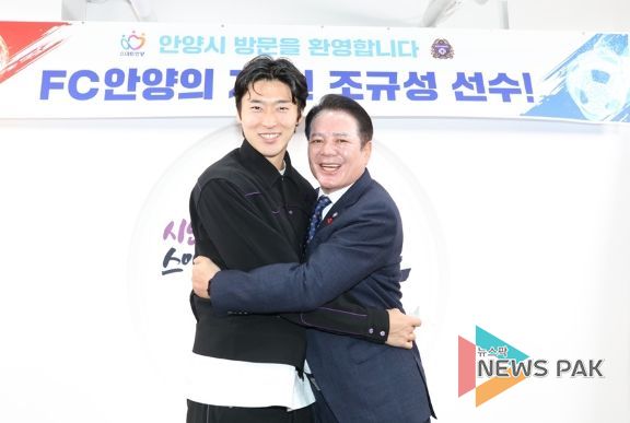 안양시에 따르면, 조규성 선수는 26일 안양시청에 찾아와 FC안양 구단주인 최대호 안양시장과 면담했다.