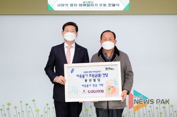 뉴스팍 최지은 기자 | 용인특례시는 27일 관내 기업 신명이엔씨(주)와 광산빌딩에서 시의 연말연시 이웃돕기 운동인 ‘사랑의 열차 이어달리기’에 성금을 기탁했다고 밝혔다.