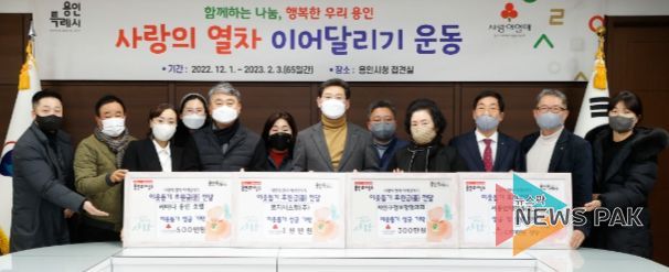뉴스팍 최지은 기자 | 용인특례시는 28일 관내 기업과 민간단체 4곳에서 시의 연말연시 이웃돕기 운동인 ‘사랑의 열차 이어달리기’에 성금과 쌀 등을 기탁했다고 밝혔다.