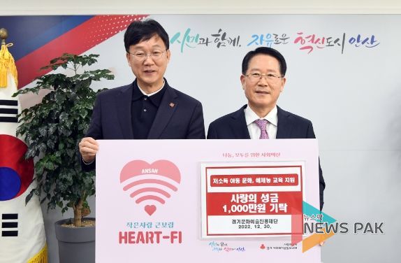 뉴스팍 최지은 기자 | 안산시는 30일 경기문화예술진흥재단(이사장 민용기)으로부터 지역 문화·예술 꿈나무 지원을 위한 후원금 1천만 원을 기탁받았다.