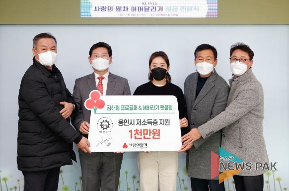 뉴스팍 최지은 기자 | 용인특례시는 4일 프로골퍼 김해림 선수(KLPGA 삼천리 소속) 와 김 선수의 팬클럽 ‘해바라기’ 회원들이 시 취약계층을 위해 써 달라며 성금 1000만원을 기탁했다고 밝혔다.