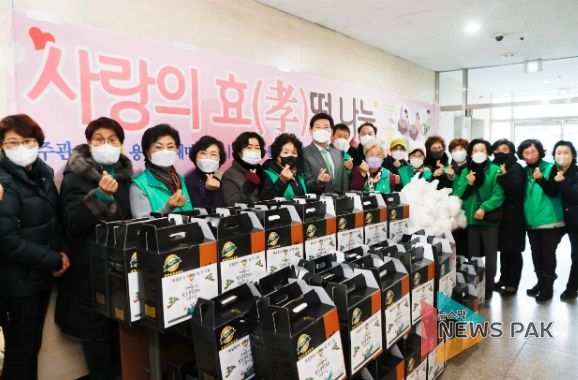 새마을부녀회원 30여 명은 이날 떡국 떡, 김 세트 등을 정성껏 준비해 취약계층 140여 명에게 전달했다.