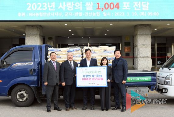 뉴스팍 최지은 기자 | 안산시는 19일 NH농협 안산시지부와 지역농협조합 군자농협, 반월농협, 안산농협으로부터 사랑의 쌀 1천4포(포대당 10㎏)를 기탁 받았다.