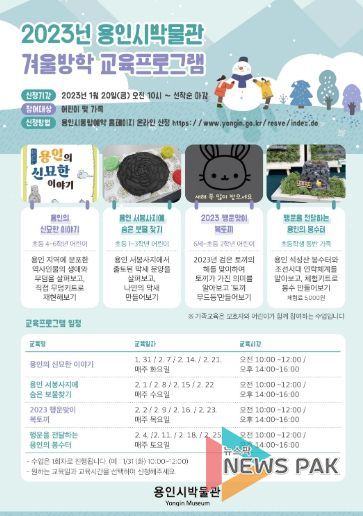 뉴스팍 최지은 기자 | 용인특례시는 겨울방학을 맞아 어린이들이 쉽고 재미있게 역사를 배울 수 있는 교육프로그램을 마련했다고 19일 밝혔다.