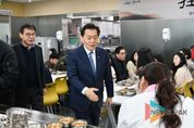뉴스팍 배상미 기자 | 수원특례시 영통구는 지난 5일, 이재준 시장이 영통구청을 방문해 직원들과 함께하는 격려 오찬 자리를 가졌다고 밝혔다. 이번 행사는 구내식당‘영통정담’에서 직원 110여 명과 오찬을 함께한 뒤, 차담을 나누는 일정으로 진행됐다. 직원들의 일상적인 식사 공간에서 마련된 자리인 만큼, 형식에 얽매이지 않은 편안한 분위기 속에서 자연스러운 소통이 이어졌다. 이날 오찬은 혼합잡곡밥과 쇠고기국, 청양풍 찜닭, 비엔나만두강정, 물미역 등으로 차려져, 소박하지만 정성이 담긴 식사를 통해 직원 간 화합과 공감의 시간이 이어졌다. 이재준 시장은 “그간 각자의 자리에서 묵묵히 시정을 뒷받침해 온 영통구 직원 여러분의 노고에 감사드린다”며, “현장에서 시민과 가장 가까이에서 일하는 공무원들의 역할이 곧 수원의 경쟁력”이라고 격려했다. 장수석 영통구청장은 “이번 자리는 직원들과 함께하는 일상의 시간을 통해 소통의 의미를 다시 한번 되새길 수 있었던 자리였다”며, “직원들에게 작은 쉼과 격려가 되는 시간이 되길 바란다”고 전했다. 한편, 영통구는 앞으로도 다양한 소통의 자리를 통해 이어