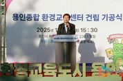뉴스팍 배상미 기자 | 용인특례시는 14일 오후 처인구 포곡읍 용인레스피아(231-1번지)에 있는 ‘용인종합 환경교육센터’ 기공식을 열었다고 15일 밝혔다. 2027년 6월 준공을 목표로 공사가 진행될 예정인 ‘용인종합 환경교육센터’는 2027년 하반기 시범운영을 거쳐 정식 개관할 예정이다. ‘용인종합 환경교육센터’는 총 사업비 199억원(시비 199억원·한강수계기금 80억원)이 투입되며, 지하 1층, 지상 3층 연면적 2702㎡ 규모로 조성될 예정이며, ▲강당 ▲학습실 ▲유아교육실 ▲전시실 ▲소모임실 등 다양한 교육·체험 공간을 갖췄다. 건물은 에너지효율 1등급을 목표로 한 ‘넷제로(Net-Zero) 건축물’로 설계해 태양광 발전 등 친환경 에너지 기술이 적용된다. 이 곳에서는 ▲환경실천 시민견학 및 체험교육 ▲환경교육 교재 및 프로그램 개발·보급 ▲환경전문가 양성과 활용 ▲학교·사회환경교육 활성화 지원 등의 프로그램이 마련돼 ‘One-Stop 환경교육 거점시설’ 기능을 수행할 것으로 기대된다. 이상일 시장은 축사에서 “민선8기 시장으로 취임한 뒤인 2022년 10월 용인특례시는 환