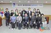 뉴스팍 배상미 기자 | 수원시 권선구는 지난 4일, 권선구청 상황실에서 각 동 통장협의회 회장들이 참석한 가운데 2월 정기 월례회의를 개최했다. 이날 회의에서는 2026년 수원시 시민안전보험, 취업준비청년 면접정장 대여사업 '청나래'와 같은 수원시의 주요 사업 안내가 이루어졌으며, 설 명절을 맞아 통장의 역할을 되새기는 시간을 가졌다. 양배근 권선구 통장협의회장은 “설 명절을 맞아 통장으로서 지역의 취약계층 등을 위해 노력하고자 한다”며, “소외된 주민들에게 먼저 손을 내밀어 지역의 발전과 화합을 위해 통장협의회가 앞장서겠다”라고 말했다. 고호 권선구청장은 “명절을 앞두고 통장님들께서 마을 구석구석을 세심하게 살펴주시길 부탁드린다”며, “앞으로도 민관이 긴밀히 소통하고 협력하여 더욱 살기 좋은 권선구를 만들어 나가는 데 최선을 다하겠다”라고 말했다.
