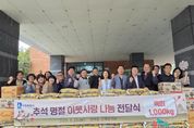 뉴스팍 배상미 기자 | 수원시 장안구 조원1동은 지난 24일, 추석 명절을 앞두고 관내 어려운 이웃을 위한 '추석맞이 이웃사랑 나눔 행사'를 개최했다고 밝혔다. 이날 행사는 주민자치회를 비롯하여 조원1동의 10개 단체와 북수원 신협, 한국건강관리협회 경기지부, 조원시장 상인회 등 다양한 곳에서 참여해 더욱 의미를 더했다. 목명균 조원1동 주민자치회장은 "우리 주변의 이웃들이 풍요로운 한가위를 보내는 데 보탬이 되고자 여러 단체 회원들이 한마음으로 뜻을 모았다"며, "앞으로도 나눔의 손길이 계속 이어질 수 있도록 노력하겠다"고 말했다. 김옥영 조원1동장은 "어려운 이웃을 위해 따뜻한 나눔을 실천해 주신 모든 후원자분들께 진심으로 감사드린다"며, "전달해주신 소중한 물품들은 필요한 이웃들에게 잘 전달될 수 있도록 하겠다"고 전했다. 조원1동은 전달받은 후원 물품들을 관내 저소득 가구와 복지 사각지대에 놓인 이웃들에게 전달할 예정이다.