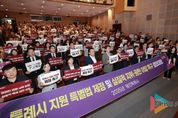 뉴스팍 배상미 기자 | 용인특례시는 22일 오후 수지구 평생학습관 큰어울마당에서 ‘특례시 지원에 관한 특별법 제정 촉구 시민결의대회’를 열고 정부에 시민의 뜻을 담은 특별법 제정의 필요성을 강력히 촉구했다. ‘2025년 시민과의 대화’에 앞서 열린 결의대회에서 이상일 시장은 300여명의 시민과 함께 ‘특례시 지원 특별법 제정 촉구’, ‘과감한 재정·사무이양 실질적 특례 권한 보장’ 등의 내용이 담긴 피켓을 들고 특례시 지원 특별법 제정을 위한 구호를 외쳤다. 이 자리에서 용인특례시를 대표하는 시민 2인이 결의문을 낭독했고, 현장에서는 시민 서명운동도 진행됐다. 이날 결의대회에 참여한 이상일 시장과 용인특례시민들은 ▲특례시 지원 특별법 조속 제정 ▲특례시에 걸맞은 행정·재정 권한의 실질적 이양 ▲시민 스스로 특별법 제정 실현에 뜻을 모았다. 이상일 시장은 “인구 110만명을 돌파한 용인특례시는 광역시급 행정과 폭증하는 도시 인프라 확충 수요를 감당하고 있지만 현행 제도에서는 기초자치단체 수준의 권한과 재정지원을 받고 있어 여러 분야에서 제약을 받고 있다”며 “특례시가 특례시 발전에 합당한 행정권한, 재정 권한을