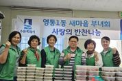뉴스팍 배상미 기자 | 수원시 영통구 영통1동 새마을부녀회는 지난 24일, 지역 내 저소득층과 독거 어르신들을 위해 ‘반찬 나눔 행사’를 진행했다. 부녀회원들은 장조림과 어묵볶음 등 정성껏 만든 반찬을 준비해 따뜻한 마음을 담았다. 이날 준비된 반찬은 어려운 이웃들에게 직접 전달되어 풍성하고 행복한 한 끼가 될 수 있도록 힘을 보탰다. 강경임 새마을부녀회장은 “작은 정성이지만 따뜻한 반찬으로 이웃분들이 건강하게 식사하시길 바란다”며 “앞으로도 지속적인 봉사활동으로 따뜻한 지역사회를 만드는 데 힘쓰겠다”고 말했다. 영통1동 관계자는 “새마을부녀회의 꾸준한 나눔 실천이 지역사회에 큰 힘이 되고 있다”며 “행정복지센터에서도 복지 사각지대 해소를 위해 적극 협력하겠다”고 전했다. 한편, 영통1동 새마을부녀회는 매년 반찬 나눔, 김장 담그기 등 다양한 봉사활동을 통해 지역 주민과의 따뜻한 소통을 이어가고 있다.