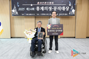 뉴스팍 배상미 기자 | 화성특례시의회 이용운 의원(더불어민주당, 비례)이 제14회 홍재의정대상을 수상했다. 시상식은 홍재언론인협회(회장 윤청신) 주최로 12월 1일 오전 수원시의회 신청사 다목적실에서 열렸다. 홍재의정·공직대상은 애민사상을 실천하며 탕평책을 폈던 조선 22대 임금 정조대왕의 정신을 잇기 위해 제정한 상으로 매년 의정활동으로 경기도민, 시민 삶의 질 향상과 풀뿌리 민주주의 구현에 기여한 지방의회 의원들과 공직자들을 엄선해 홍재언론인협회가 수여하는 상이다. 이용운 의원은 제9대 화성특례시의회 의원으로서 사회적 약자의 권익 증진, 지역 상권 활성화를 위해 힘썼다. 특히 5분 자유발언을 통해 ‘장애인 경제적 자립과 사회참여 확대 정책 지원’, ‘학교 교육 지원사업 개선’을 촉구하는 등 장애인복지 정책 강화와 차별 없는 교육환경 마련에 기여한 공로를 인정받았다. 이용운 의원은 "앞으로 장애인복지, 교육환경 개선 등 시민의 삶을 직접 변화시키는 정책에 더욱 힘쓰겠다"며 "항상 현장에서 답을 찾는 의정활동으로 보답하겠다"고 수상 소감을 밝혔다. 홍재(弘齋)는 조선 22대 임금인 정조대왕의 호다. 홍재에는 모든 백성을 널리 사랑하고 이롭게 하겠다는 정조대왕