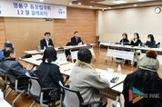 뉴스팍 배상미 기자 | 수원시 영통구는 지난 1일 영통구청 상황실에서 영통구 통장협의회 12월 월례회의를 개최했다. 이날 회의에는 12개 동 통장협의회장이 전원 참석하여, 올 한 해를 돌아보고 서로의 노고를 격려하는 시간을 가졌다. 올해는 특히 일반 시·구·동정 뿐만 아니라, 영남지역 산불피해 지원 특별모금·대통령 선거·민생회복 소비쿠폰 등 주요 국정 사무를 지원하느라 모두가 분주한 한 해를 보냈다. 또한 12월 시·구정 홍보사항을 전달하기도 했다. △통장 정치적 중립 준수 △2026년 적십자회비 모금 △수원시 생활밀착 민간시설 한파쉼터 모집 △영통복합체육센터 시범운영 등 중요한 내용을 안내하고 각 동 통장 및 주민들에게 전파할 수 있도록 당부했다. 장수석 영통구청장은 “통장님들께서 올 한 해 동안 노고가 많으셨다”며, “남은 한 해 마무리 잘하시고, 내년에도 행정 최일선에서 민·관 가교 역할을 성실히 수행해주시기를 당부드린다”고 말했다.